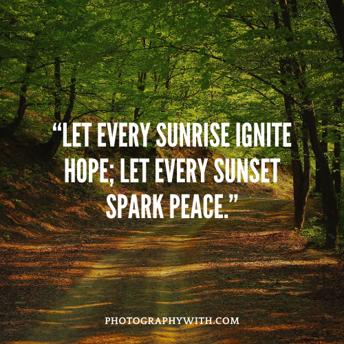“Let every sunrise ignite hope; let every sunset spark peace.”